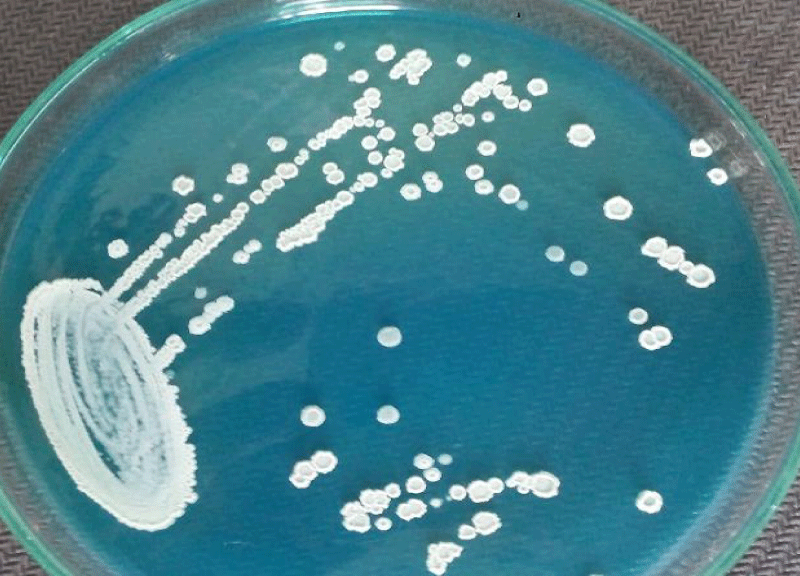 图2:隔夜培养后,在CLED琼脂培养基上干燥乳白色菌落。