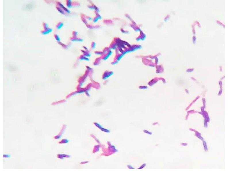 图1:在100倍物镜下观察到的分离物革兰氏染色涂片。